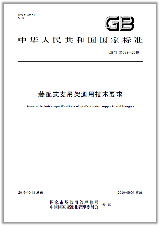 由蘇州華固參與起草的《裝配式支吊架通用技術要求》GB/T 38053-2019于2019.10.18日正式發布。